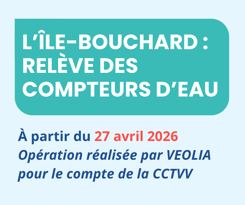 À compter du lundi 27 avril 2026, une campagne de relève des compteurs d’eau sera réalisée sur la commune de L’Île-Bouchard.